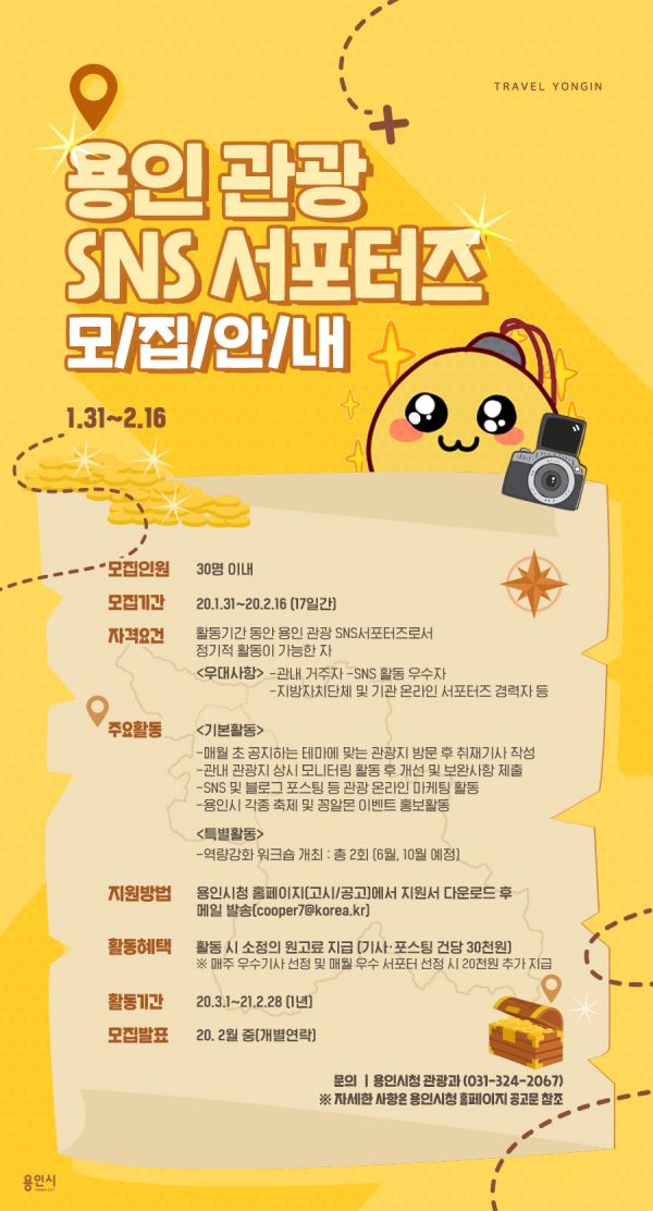 시 관계자는 “용인시 관광 자원을 적극적으로 알릴 수 있는 참신하고 센스있는 분들의 적극적인 지원을 바란다”고 말했다.
