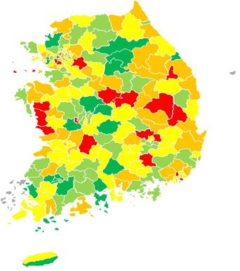 그룹별로 1위 지자체는 인구 30만명 이상인 시에서는 강원도 원주시, 30만명 미만인 시에서는 전남 광양시, 군 지역에서는 충북 영동군이, 자치구에서는 광주 남구가 선정됐다.