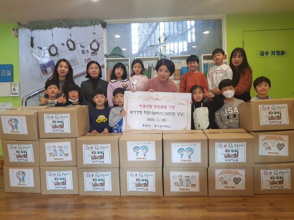 후원물품은 경기유아학교 어린이들이 지난해 유아학교 텃밭에서 직접 농작물을 재배해 판매한 대금과, 바자회 수익금으로 준비한 100만원 상당의 선물상자 20박스로 복지사각지대에 처해 위기상황을 겪고 있는 어르신들에게 후원하기 위해 고양동복지일촌협의체에 기증했다.