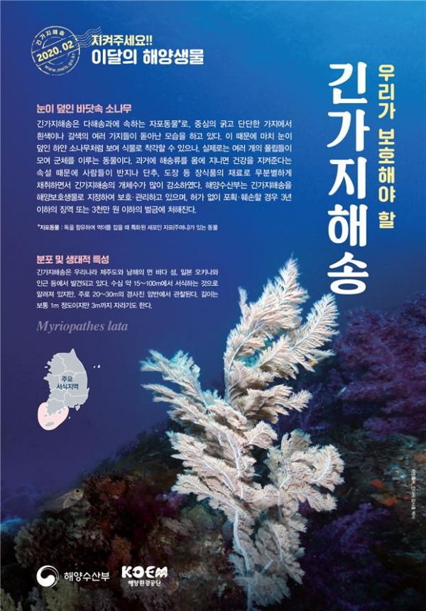 해양수산부 관계자는 “긴가지해송은 국내에 있는 연산호 중에서도 희귀한 종이며 학술적으로 중요한 가치를 지닌 해양생물이다”며 “소중한 해양생물자원을 함께 지켜나갈 수 있도록 국민들에게 긴가지해송을 널리 알리는 데 힘쓰겠다”고 말했다.
