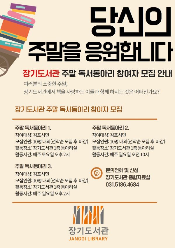 모집 방법은 전화나 장기도서관 종합자료실 방문 신청으로 가능하다.