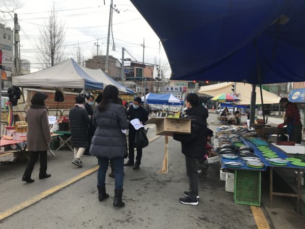 시는 28일부터 30일 3일간 관련 부서 전 직원이 원당·능곡·일산전통시장과 덕이동 상점가 등에 나가 상인과 이용 시민들을 대상으로 마스크 7,000여개와 손세정제 배부를 실시했다.