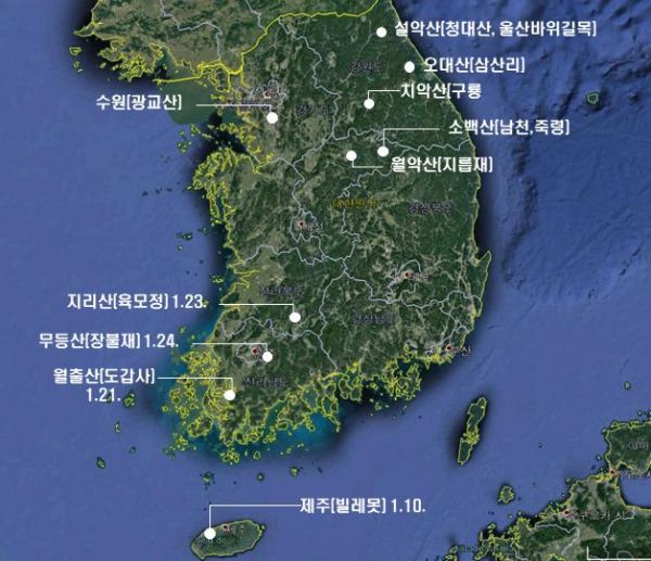 한편 월출산국립공원 도갑사에서 지난해보다 6일 빠른 1월 21일 북방산개구리의 산란이 확인됐으며 무등산국립공원 장불재의 경우 지난해보다 37일 이른 1월 24일 산란이 확인됐다.