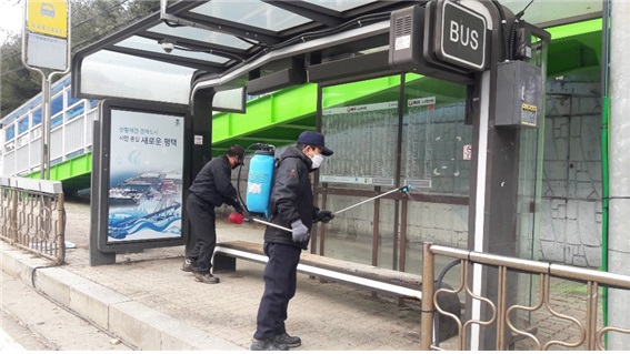 이날 안중읍 직원과 기간제근로자 15명은 주민들이 가장 많이 이용하는 버스승강장에 대해 방역소독을 완료했으며 공공시설, 금융기관, 대형마트 등 다중이용시설을 대상으로 홍보물, 손소독제, 마스크 등을 배부하며 주민들에게 감염병 예방을 위해 개인위생 수칙을 준수할 것을 당부했다.