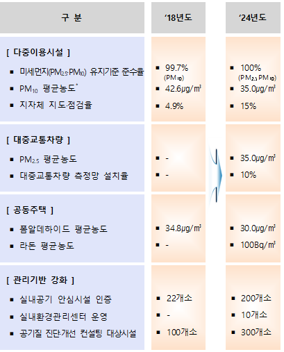 민감계층 이용시설을 포함한 다중이용시설의 실내공기질에 대한 제도적 기반 강화와 함께 자율적 관리로의 전환을 도모한다.