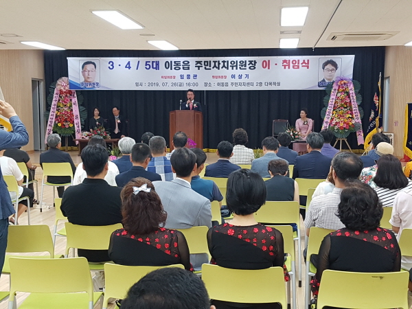 이날 지난 2016년부터 제3·4기 주민자치위원회를 이끌어온 임종관 위원장이 이임하고 이상기 위원장이 취임했다.
