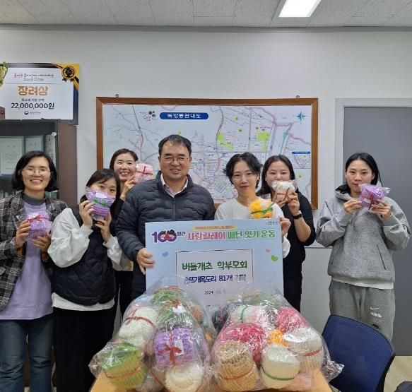 최광규 동장은 “꾸준한 100일간 사랑릴레이 배턴 잇기 참여로 따뜻한 나눔을 실천하는 버들개초 학부모회에 감사드린다”며, “기탁된 목도리는 지원이 필요한 이웃에게 정성껏 전달하겠다”고 말했다.