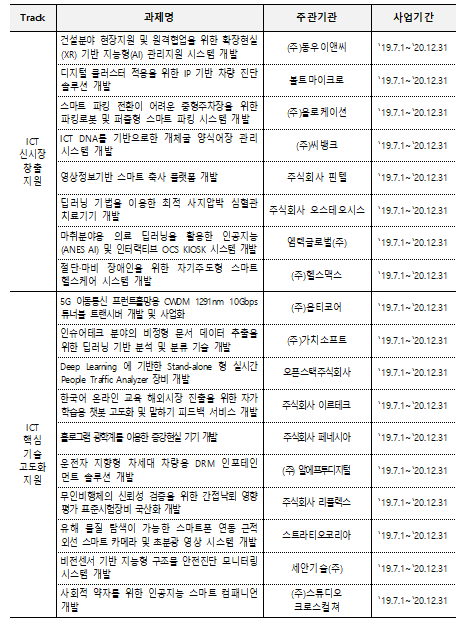 과학기술정보통신부는 오는 31일, ‘2019년 ICT 혁신기업 기술개발 지원사업’의 18개 기술개발 과제를 최종 선정·추진한다고 밝혔다.