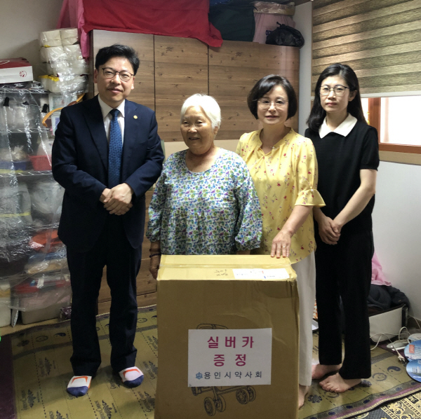 이 실버카는 용인시 약사회가 지난 5월 개최한 제13회 사랑플러스 자선다과회에서 참여자들이 후원한 금액의 일부로 마련한 것이다.