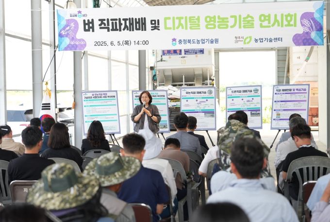 미디어라이프 중부신문 임정헌 기자 | 충북농업기술원은 6월 5일 청주시 상당구 장암동 일원에서 도내 농업인과 충청북도 및 의회, 농촌진흥청, 농협 등 관계자 70여 명이 참석한 가운데 벼 직파재배 및 디지털 영농기술 연시회를 개최했다고 밝혔다.