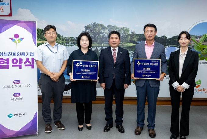미디어라이프 중부신문 임정헌 기자 | 제천시는 지난 5일 여성친화기업으로 선정된 기업과 협약을 체결하고 인증 현판을 수여했다.