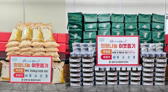 대사신협은 개소 축하화환 대신 받은 백미 50포(총 500kg, 150만 원 상당)를 문화1동 및 대사동 행정복지센터에 각 25포(250kg)씩 기부했다.
