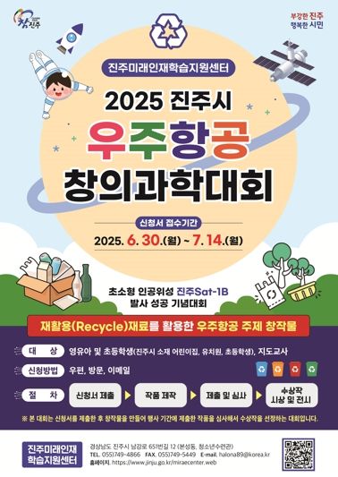 미디어라이프 중부신문 임정헌 기자 | 진주미래인재학습지원센터는 유아와 초등학생을 대상으로 ‘2025년 진주시 우주항공 창의과학대회’를 개최한다.