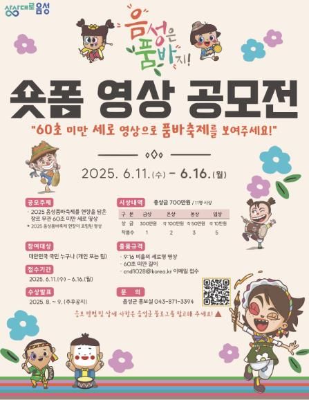 미디어라이프 중부신문 임정헌 기자 | 음성군은 이달 11일부터 16일까지 2025년 음성품바축제 숏폼 영상 공모전을 개최한다.