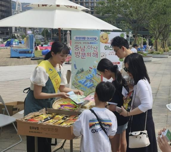 또 온양온천 때수건과 온궁 마스크팩 등 지역 관광 자원을 활용한 이색 홍보물도 함께 배포하며, 아산의 매력적인 관광 자원을 알리고 관심을 끌어냈다.