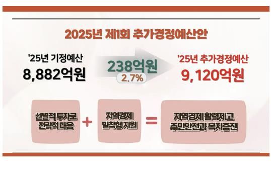 추경 재원은 국·시비 보조금, 조정교부금, 기금전입금 등으로 마련했으며, 집행불가 사업, 불요불급한 사업 등을 과감히 조정해 한정된 재정 여건 속에서도 재정 건전성과 효율성을 높였다.