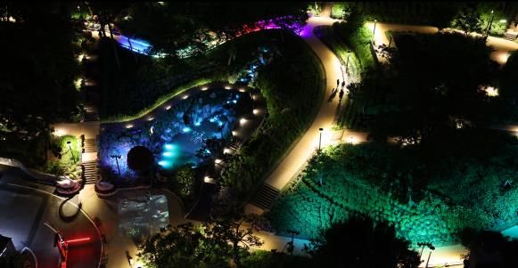 또한 올해 새롭게 조성된 수국 트리에는 레이저 조명을 비춰 화사함을 더한다. 이외에도 입구와 중간 산책로, 전망대 등 주요 동선에는 라인바 조명 등을 배치하고, 어두운 구간에는 반딧불 조명을 설치해 안전성과 감성적 매력을 동시에 높였다.