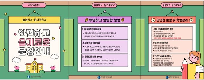 미디어라이프 중부신문 임정헌 기자 | 대전시교육청은 늘봄학교・중등 방과후학교의 청렴한 행정과 안전한 학생 관리를 실현하고자 ‘2025학년도 늘봄학교・중등 방과후학교 강사 대상 운영 안내 자료’를 배부한다고 밝혔다.