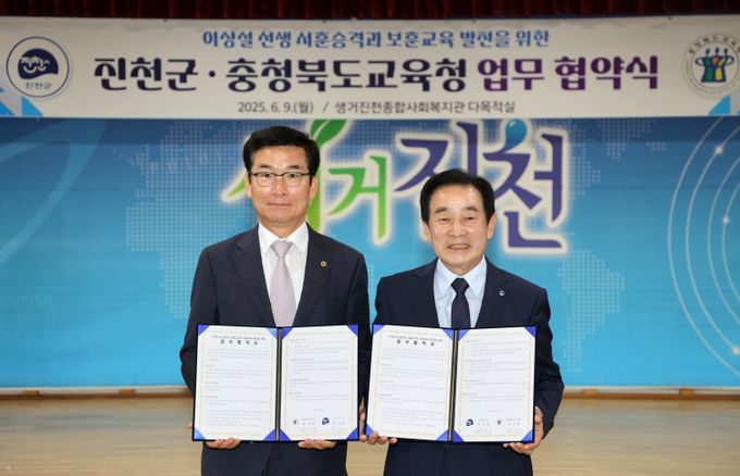 미디어라이프 중부신문 임정헌 기자 | 충청북도교육청은 9일, 생거진천종합사회복지관 다목적실에서 보재 이상설 선생의 합당한 서훈 승격 추진과 지역 내 보훈 교육을 위한 협력 체계 구축을 위해 진천군(군수 송기섭)과 업무협약을 체결했다.