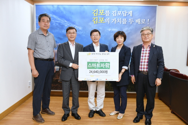 이번에 기부된 엘이디전등 350개는 김포복지재단을 통해 김포시 13개 읍면동 경로당에 전달될 예정이다.