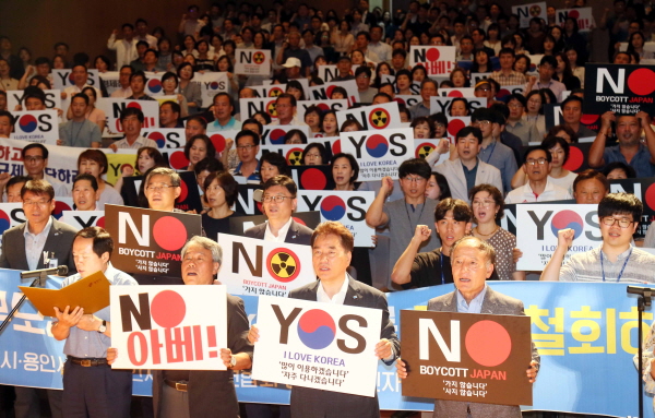 참가자들은 이날 일본 정부가 수출규제 조치를 철회하기 전까지 일본여행을 보이코트하고 일본산 제품 불매운동에 앞장설 것을 결의했다.