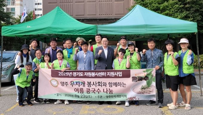 미디어라이프 중부신문 이도경 기자 | 양주시 무지개봉사회가 지난 23일 오전 11시부터 오후 1시 30분까지 백석읍 휴먼시아 아파트에서 무더위를 이겨내고 이웃 간의 정을 나누기 위한 ‘여름 콩국수 나눔 초대 행사’를 열었다.