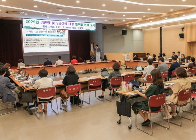 미디어라이프 중부신문 이종인 기자 | 과천시는 지난 25일 시청 대강당에서 기관장과 5급 이상 간부공무원 40여 명을 대상으로 ‘2025년 부패방지 청렴교육’을 실시했다고 밝혔다.