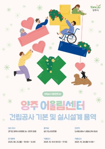 미디어라이프 중부신문 이도경 기자 | 경기도 양주시 유양동 26-3번지 일원에 조성될 ‘양주 어울림센터 건립사업’ 일반 설계공모에 총 122팀이 참가 의사를 밝혔다.
