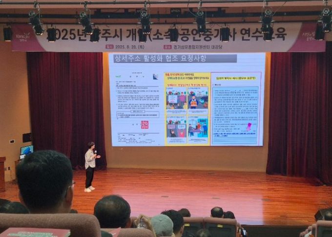 미디어라이프 중부신문 이도경 기자 | 양주시가 지난 28일, 경기섬유종합지원센터 대강당에서 관내 공인중개사를 대상으로 상세주소 부여 활성화와 주소 안전신문고 운영에 대해 교육 및 홍보를 실시했다.