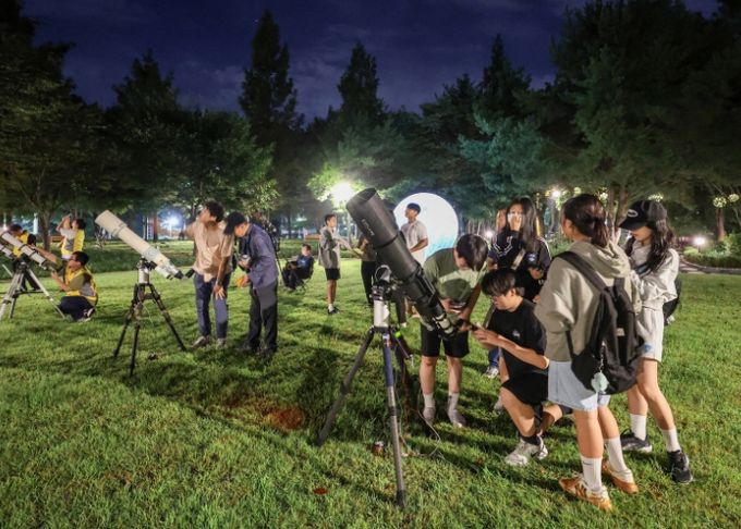 행사에서는 천체관측뿐만 아니라 달 모형 만들기, 달 뱃지 만들기 등 체험 프로그램이 함께 운영돼 가족 단위 참가자들의 큰 호응을 얻었다. 또한 대형 월면구 포토존이 설치돼 시민들이 붉은 달을 배경으로 추억을 남기는 장면도 이어졌다.