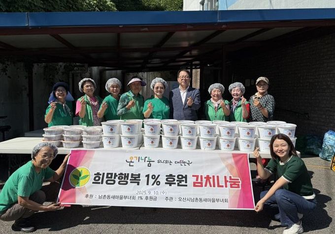 미디어라이프 중부신문 이종인 기자 | 오산시 남촌동 행정복지센터는 지난 10일 남촌동새마을부녀회가 주관한 ‘희망행복 1% 후원 김치 나눔 행사’를 성황리에 진행했다고 밝혔다.