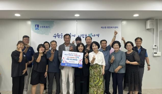 이번 성금은 지난 8월 30일 매교동 행정복지센터 신청사부지에서 열린 ‘2025 매교동 무궁화 축제’ 행사장에서 리본아트 등 6개의 플리마켓과 닭강정 등 5개의 먹거리부스 등을 운영한 수익금으로 마련됐으며, 전달된 성금은 경기공동모금회를 통해 도움이 필요한 취약계층에 사용될 예정이다.