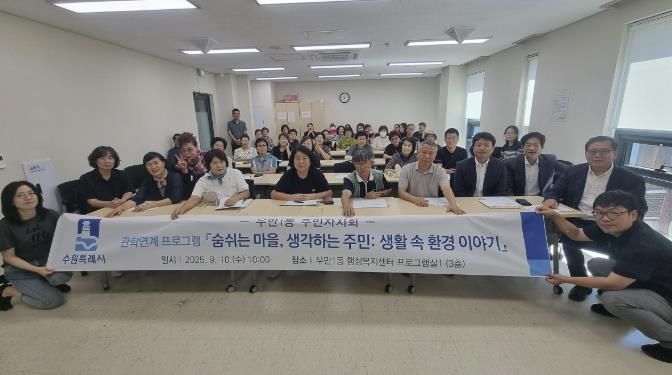 미디어라이프 중부신문 이종인 기자 | 수원시 팔달구 우만1동 주민자치회는 지난 10일 우만1동 행정복지센터에서 환경 인식 제고를 위한 '숨쉬는 마을, 생각하는 주민: 생활 속 환경 이야기' 프로그램을 개최했다.