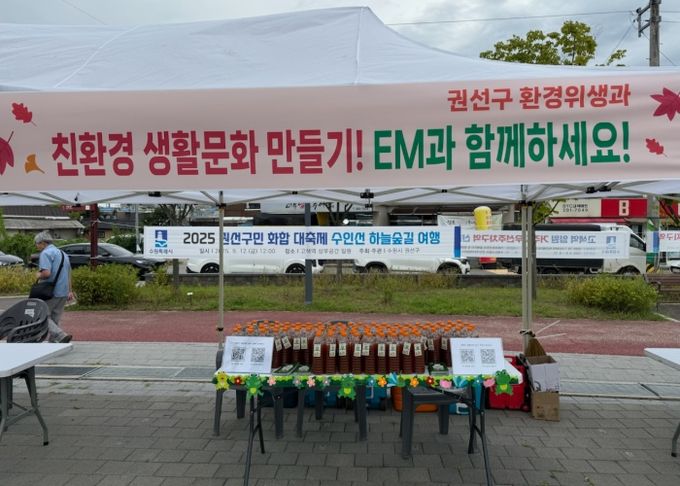 미디어라이프 중부신문 이종인 기자 | 수원시 권선구는 지난 9월 12일 개최된 ‘2025 권선구민 화합 대축제’현장에서 EM보급사업 홍보부스 운영을 통해 주민들의 큰 호응을 얻었다고 밝혔다.