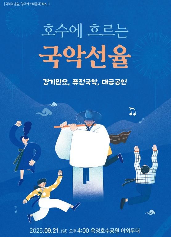 첫 번째 공연은 9월 21일 오후 4시 옥정호수공원 야외무대에서 열린다. 경기민요, 아리랑 연곡, 뱃노래, 퓨전 국악 등 전통과 현대가 어우러진 무대가 마련된다.