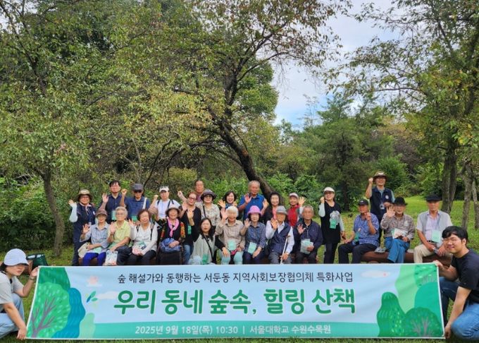 미디어라이프 중부신문 이종인 기자 | 수원시 권선구 서둔동 지역사회보장협의체는 지난 18일, 관내 어르신 20명을 모시고 서울대농대 수원수목원에서‘우리 동네 숲속, 힐링 산책’숲 체험 나들이를 진행했다.