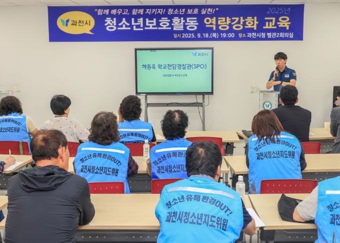 미디어라이프 중부신문 이종인 기자 | 과천시는 지난 18일 시청 별관2 회의실에서 청소년지도위원, 유해환경감시단, 문원초 아버지회 등 청소년 선도·보호 활동 단체 40여 명을 대상으로 ‘함께 배우고, 함께 지키자! 청소년 보호실천!’이라는 주제로 역량 강화 교육을 했다.