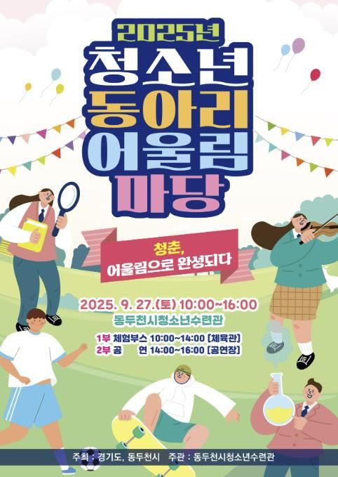 미디어라이프 중부신문 이도경 기자 | 동두천시는 오는 9월 27일 동두천시 청소년수련관(지행로 95)에서 '2025년 동두천시 청소년 동아리 어울림마당'을 개최한다고 밝혔다.