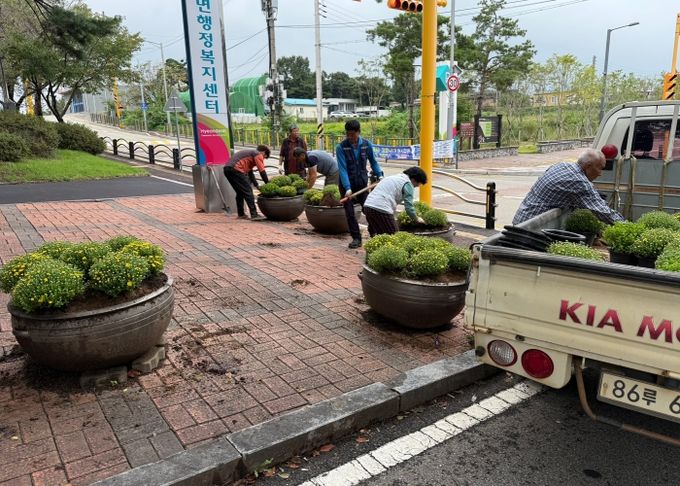 이날 위원들은 국화 등 가을꽃을 직접 심어 밝고 따뜻한 분위기를 조성했다. 특히 행정복지센터를 찾는 민원인들이 꽃을 보며 힐링할 수 있도록 화단 배치와 색상 구성에도 정성을 들였다.