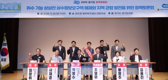 미디어라이프 중부신문 이종인 기자 | 경기도의회 도시환경위원회 박명수 의원(국민의힘, 안성2)이 좌장을 맡은 '취수 기능을 상실한 상수원보호구역 해제와 지역 균형 발전을 위한 정책토론회'가 26일 오전 11시, 공도읍 행정복지센터 대회의실에서 열렸다. 이번 토론회는 ‘2025 정책토론 대축제’의 일환으로 박명수 의원이 기획하고 경기도의회와 경기도가 공동으로 주최했다.