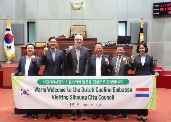미디어라이프 중부신문 이종인 기자 | 시흥시의회 도시환경위원회가 9월 30일 의회청사 소담뜰에서 네덜란드 자전거대사관(Dutch Cycling Embassy, DCE)을 초청해 간담회를 열고, 시흥시 자전거 정책 발전 방향과 친환경 교통 시스템 구축 방안에 대해 논의했다.