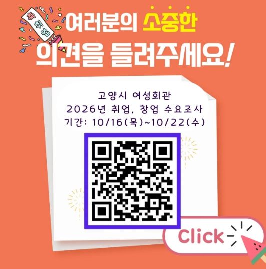 이번 조사는 고양시민을 대상으로 22일 오후 5시까지 진행되며, 온라인 설문을 통해 참여할 수 있다. 설문은 QR코드를 통해 접속 가능하며, 취업과 창업 분야에 대한 실질적인 수요를 파악하는 데 중점을 둔다.