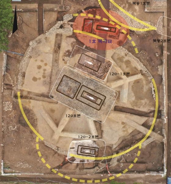 이번에 확인된 목곽묘는 적석목곽분인 120호분의 아래에서 발견되어 신라의 무덤 양식이 목곽묘에서 적석목곽분으로 변화하는 전환기적 요소를 명확하게 보여주는 귀중한 사례이다. 특히 목곽묘 내부에서는 신라에서 가장 오래된 것으로 추정되는 금동관의 일부가 확인되어 신라 지배층의 금속 공예 기술 연구에 새로운 지평을 열 것으로 기대된다.