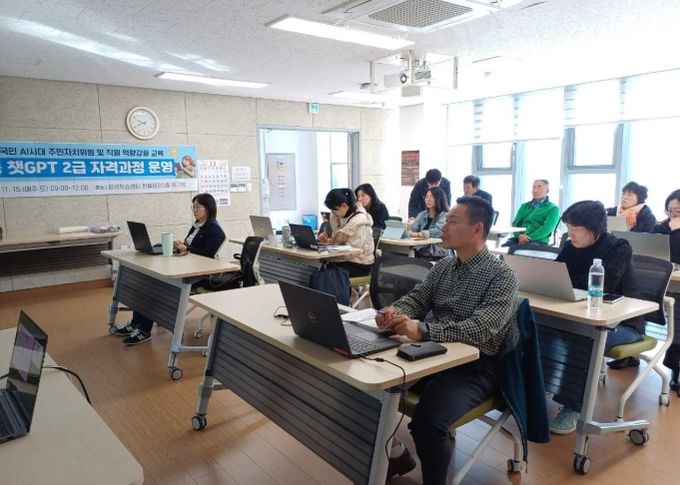 미디어라이프 중부신문 이종인 기자 | 이천시 관고동 주민자치회는 전국민 인공지능(AI) 시대를 준비하기 위해 직원, 학습센터 강사, 주민자치위원 등 14명을 대상으로 챗지피티(Chat GPT) 2급 자격 과정을 11월부터 매주 토요일 총 4회 운영한다고 밝혔다.