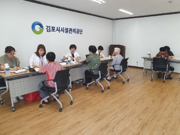 공단은 김포시보건소와 협력으로 무더위쉼터를 찾는 어르신들의 혈압, 혈당, 콜레스테롤 측정 및 치매 검사를 진행하는 등 의료 취약계층 어르신들을 위한 건강검진을 실시해 큰 호응을 얻고 있다.