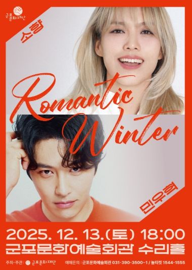 미디어라이프 중부신문 이종인 기자 | 군포문화재단은 오는 12월 13일 오후 6시, 군포문화예술회관 수리홀에서 연말 기획공연 “소향×민우혁 콘서트 'Romantic Winter'”를 개최한다.