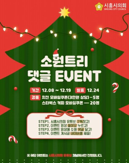 미디어라이프 중부신문 이종인 기자 | 경기 시흥시의회가 다가오는 성탄절을 맞아 시민들과 따뜻한 마음을 나누고 소통을 강화하기 위해 ‘소원트리 댓글 이벤트’를 진행한다.