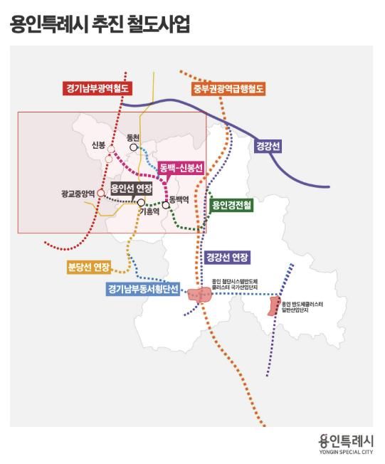 이상일 시장은 "수인분당선과 연결되어 있는 용인선을 연장해서 신분당선, 동탄인덕원선과 연계하면 용인과 수원, 과천, 화성의 시민들의 교통편의가 증진된다"며 "이 사업의 실현을 위해 시의 모든 역량을 투입하겠다"고 말했다.