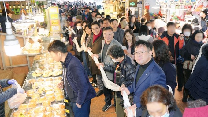 못골종합시장 입구에서 출구까지 180m 길이의 가래떡을 끊지 않고 뽑는 이벤트가 열렸다. 시민들은 길게 늘어서 본인이 잡은 만큼의 가래떡을 나누며 새해의 복과 건강을 기원했다.