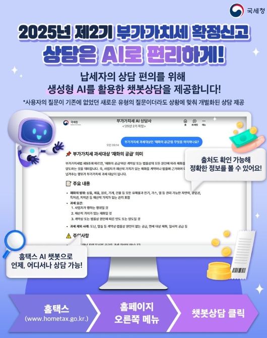 미디어라이프 중부신문 이도경 기자 | ■ 2025년 제2기 부가가치세 확정신고 상담은 AI로 편리하게!